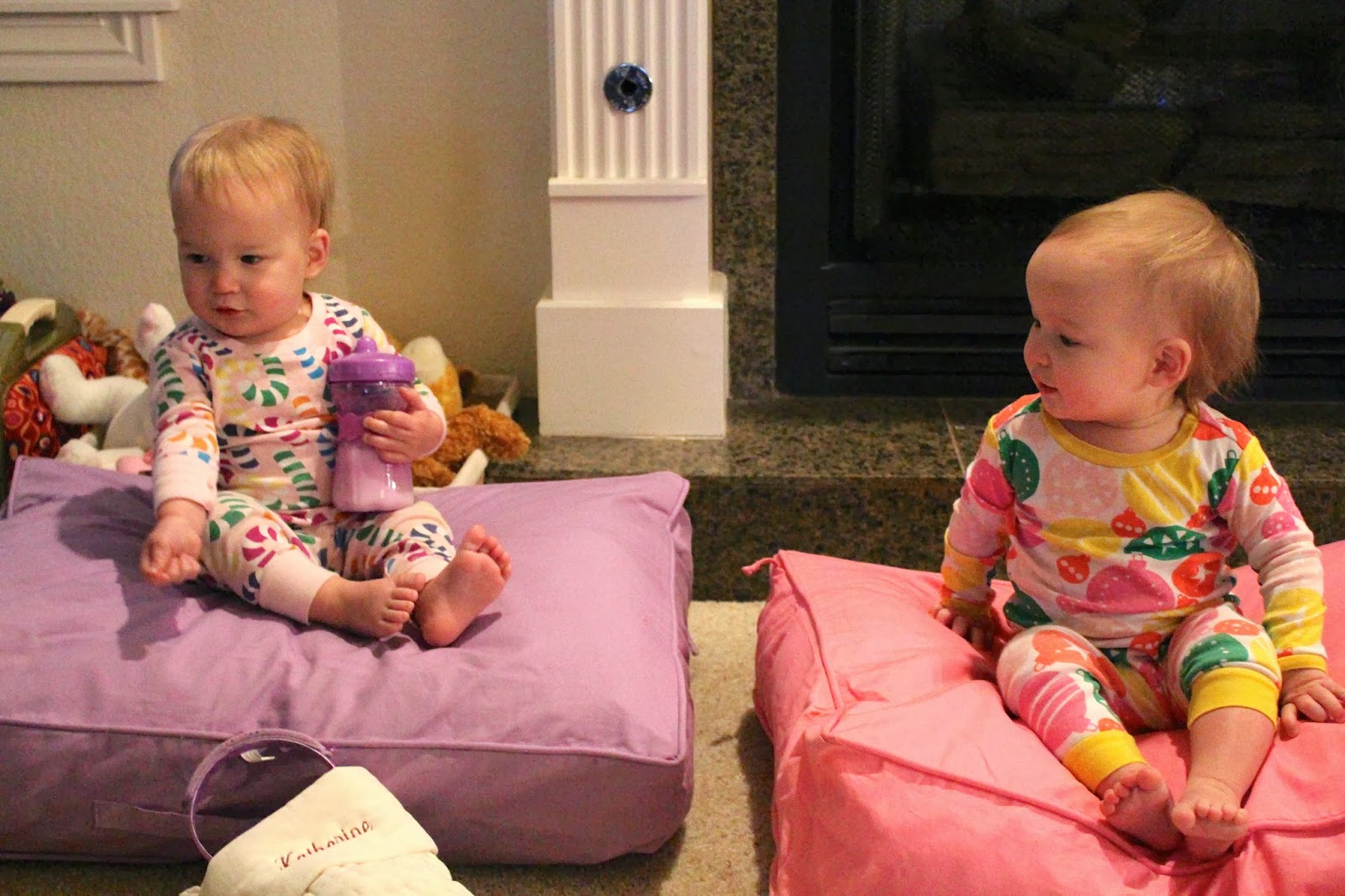 Christmas morning was SO much fun with Kate and Maddie. I know as they grow older, it will only become more fun! Santa brought big floor pillows and stocking stuffers. Pretty sure they would have been more than content with their toothpaste, bath toys, crown, etc. in their stocking! They also opened clothes and one toy each. Kate got a Little People Bus, and our animal lover got a veterinarian kit.